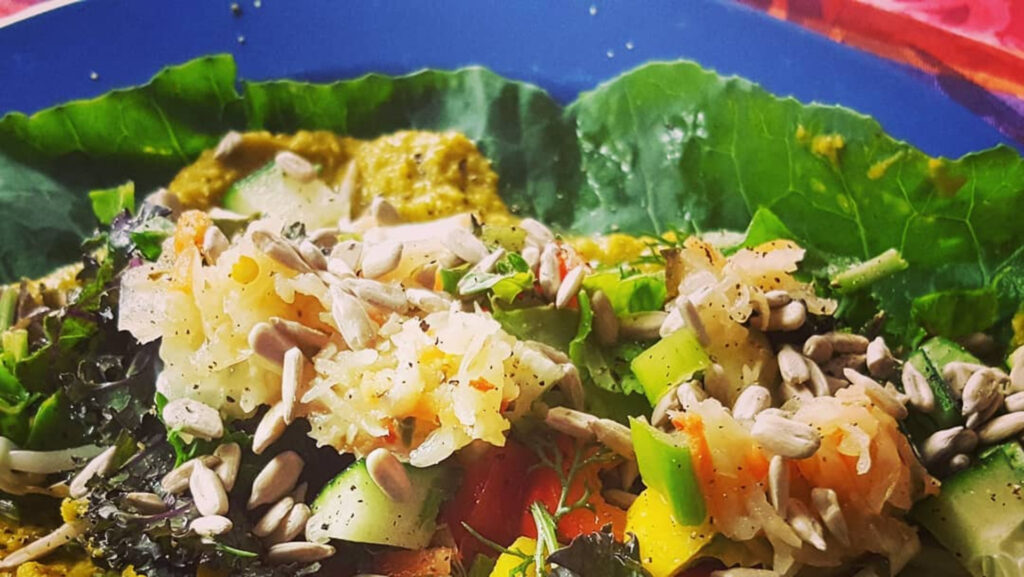 Discover a delicious healthy meal for detox! This fresh collard wrap with hummus and veggies supports digestion and boosts energy. Try it now!